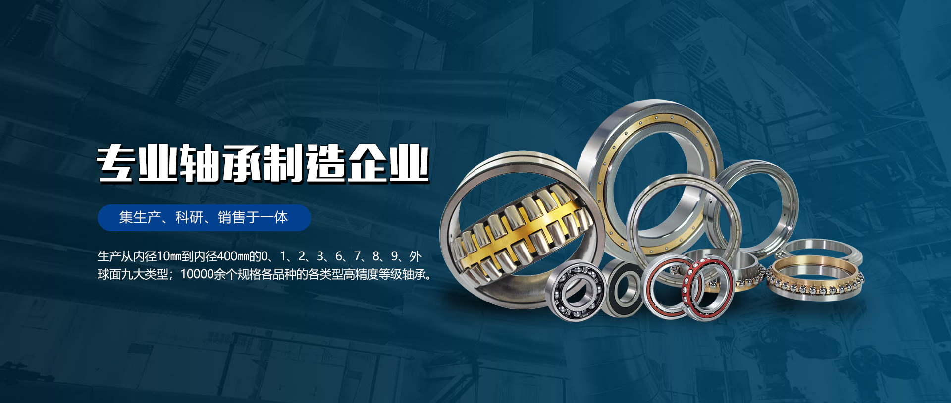 哈爾濱精密軸承有限公司是集生產、科研、銷售于一體的專業軸承制造企業,公司擁有國內外先進的專業生產設備,擁有一流的產品檢測手段,以及高素質的專業人員。年生產能力100萬套,可生產從內徑10㎜到內徑400㎜的0、1、2、3、6、7、8、9、外球面九大類型;10000余個規格各品種的各類型高精度等級軸承。